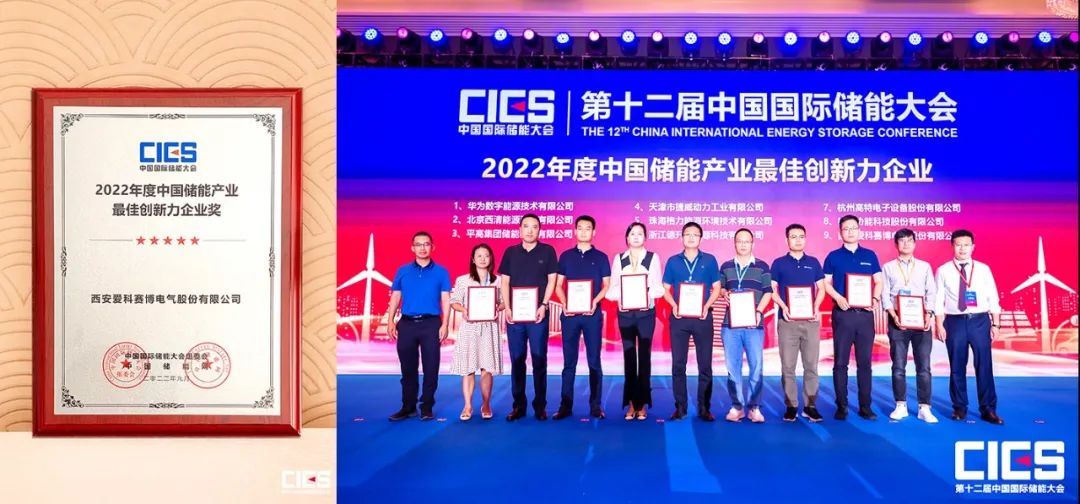 由中國化學與物理電源行業(yè)協(xié)會主辦的CIES2022第十二屆中國國際儲能大會于9月7-9日在杭州舉行。愛科賽博受邀出席了此次大會,并榮獲“2022年度中國儲能產(chǎn)業(yè)最佳創(chuàng)新力企業(yè)獎”。
