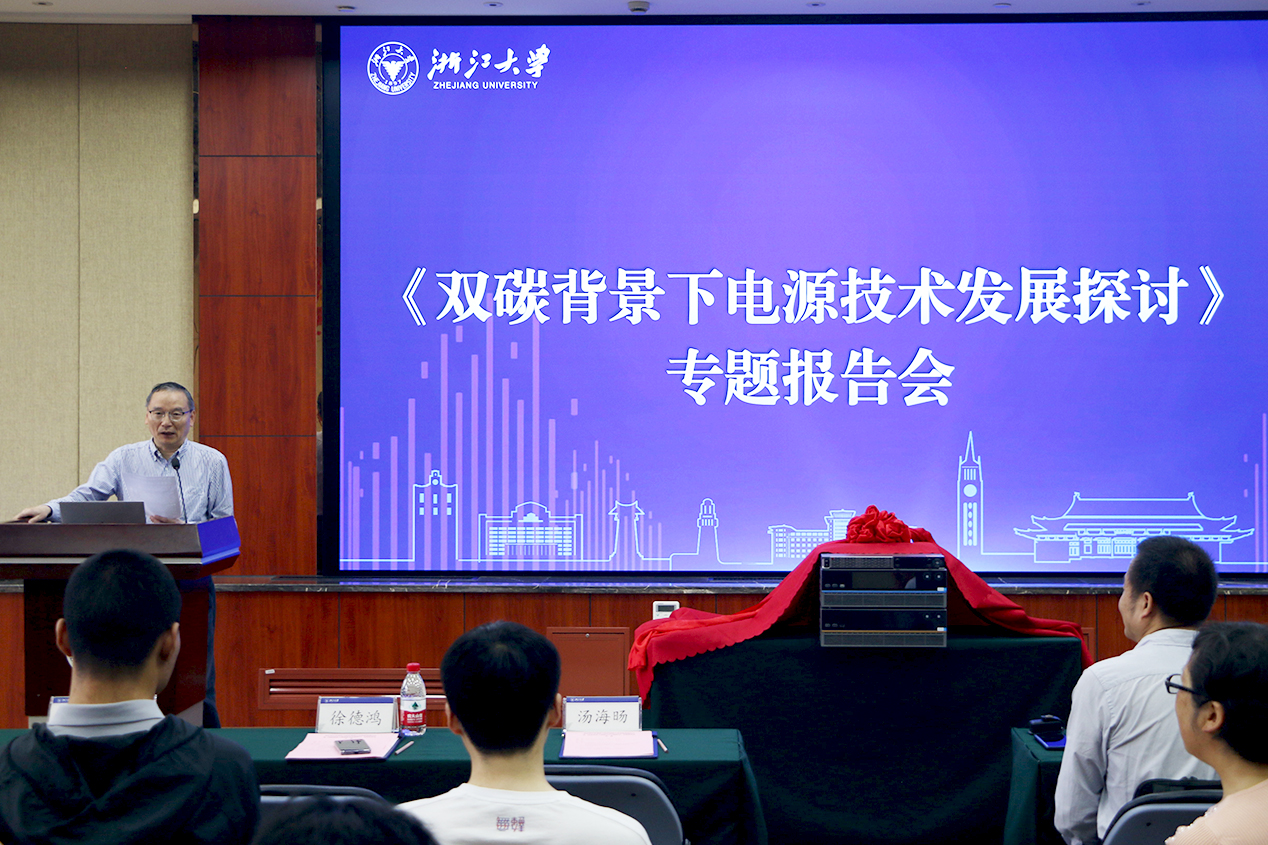 捐贈(zèng)儀式結(jié)束后,在徐德鴻教授主持下,白小青董事長(zhǎng)做了“雙碳背景下電源技術(shù)發(fā)展探討”的主題報(bào)告,與浙大的老師和同學(xué)們進(jìn)行了分享和互動(dòng)交流。
