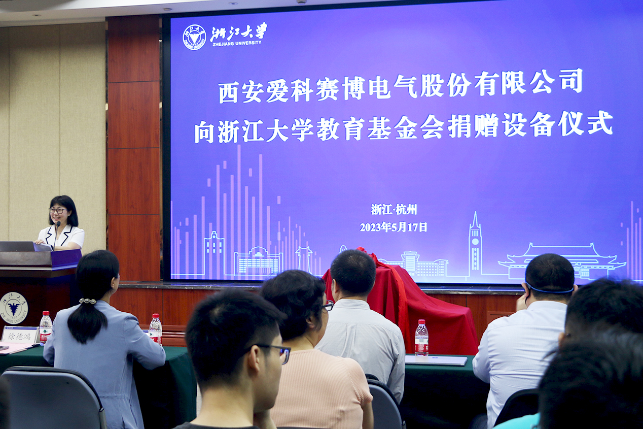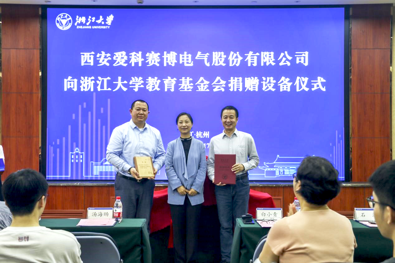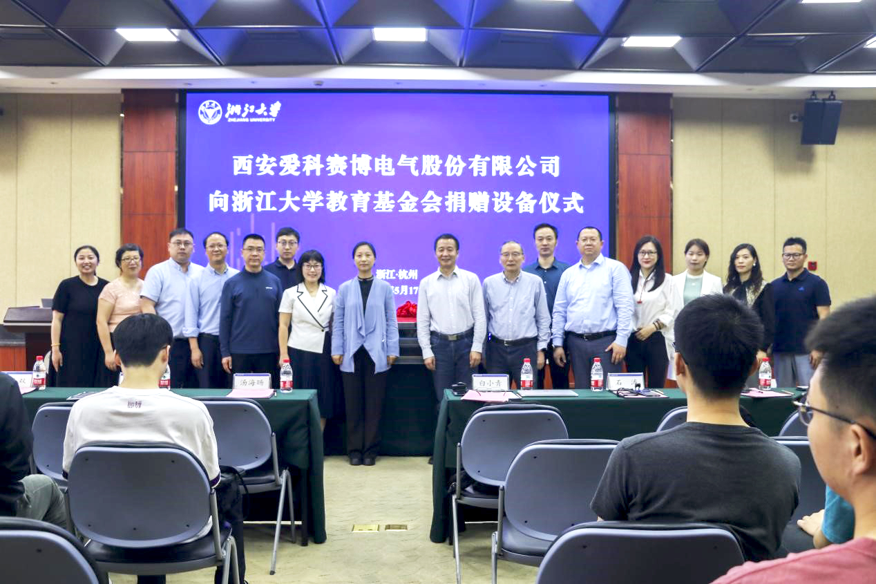 5月17日,愛(ài)科賽博向浙江大學(xué)教育基金會(huì)捐贈(zèng)精密測(cè)試電源設(shè)備儀式在浙江大學(xué)玉泉校區(qū)邵科館舉行,浙江大學(xué)電氣工程學(xué)院黨委書(shū)記兼副院長(zhǎng)湯海旸、浙江大學(xué)電力電子技術(shù)研究所所長(zhǎng)徐德鴻、西安愛(ài)科賽博電氣股份有限公司董事長(zhǎng)白小青、副總經(jīng)理石濤出席,活動(dòng)由浙江大學(xué)電氣工程學(xué)院黨委副書(shū)記魯小雙主持,浙江大學(xué)電氣工程學(xué)院相關(guān)領(lǐng)導(dǎo)、學(xué)科教授與碩博生代表與愛(ài)科賽博相關(guān)部門負(fù)責(zé)人共同參與活動(dòng)。