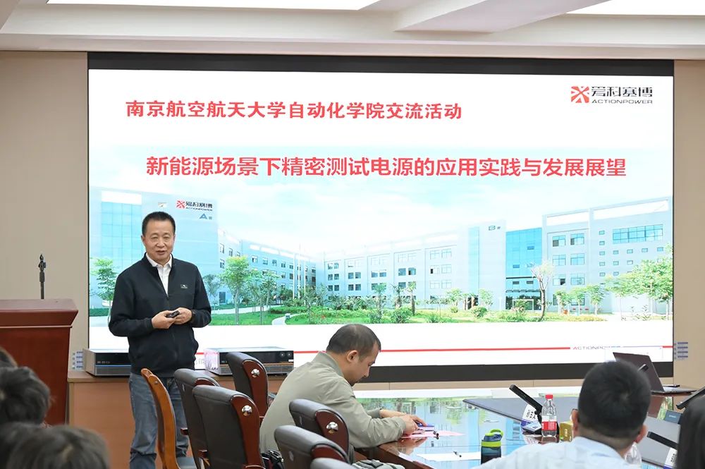 捐贈儀式結(jié)束后,白小青董事長做了“新能源場景下精密測試電源的應用實踐與發(fā)展展望”的專題報告,與南航師生進行了分享交流。隨后,公司一行參觀了南航電氣工程系實驗室,雙方對后續(xù)產(chǎn)學研合作相關(guān)問題進行了交流探討。