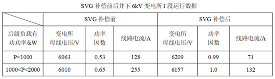設(shè)備投運后,礦井供電質(zhì)量得到了明顯改善,提高了系統(tǒng)功率因數(shù),降低了線路電流起到節(jié)能作用(節(jié)能在15%以上),降低遠距離供電設(shè)備啟動的電壓降問題,提高了供電系統(tǒng)的穩(wěn)定性和可靠性,確保了用戶井下供電系統(tǒng)安全合理、經(jīng)濟運行。