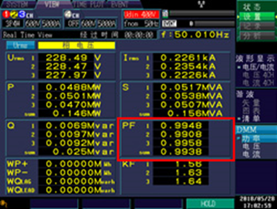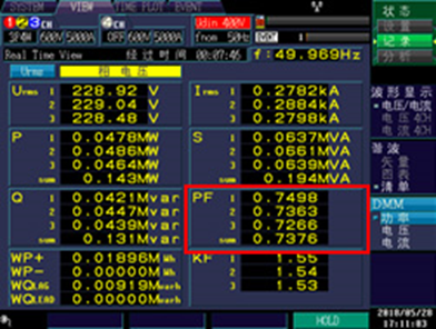 從測試數(shù)據(jù)看出,變壓器低壓側(cè)電流波形發(fā)生嚴重畸變,功率因數(shù)0.74左右,較低。
